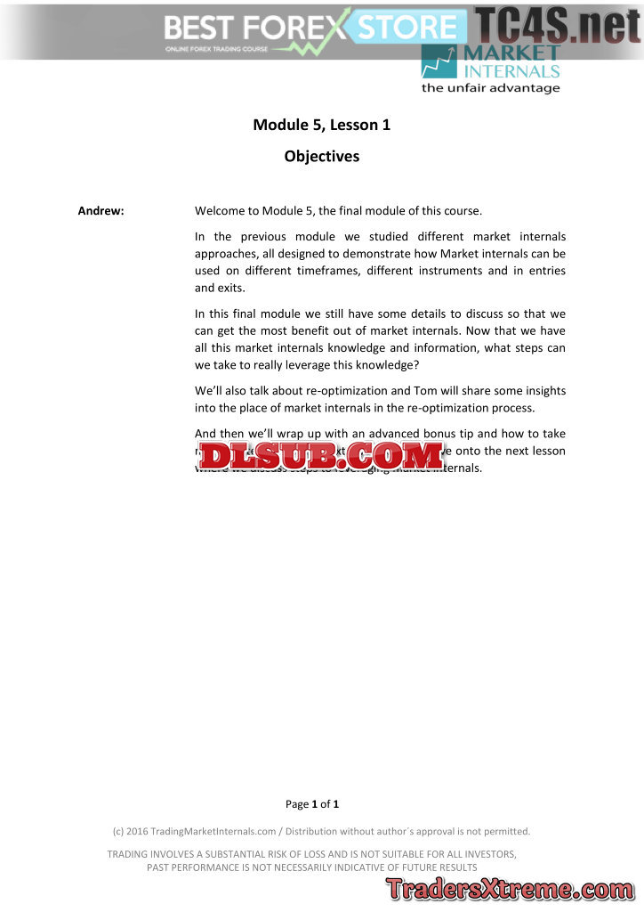 Module 5 Leveraging Your Market Internals Knowledge