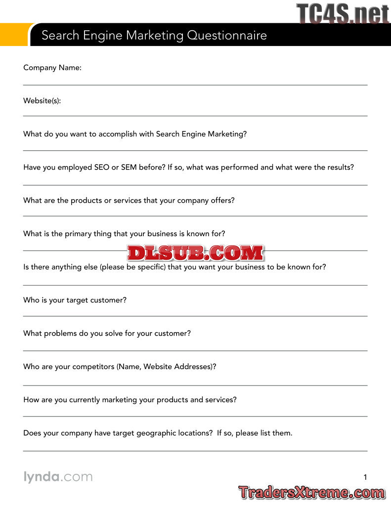 Search Engine Marketing Questionnaire - JPG Image File