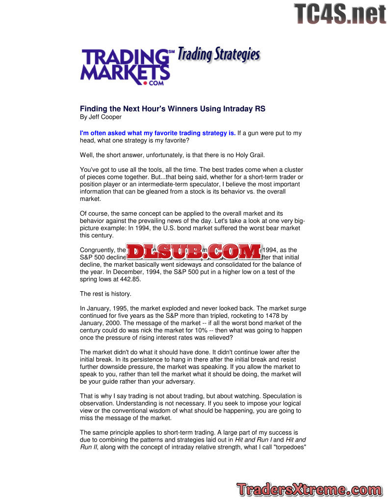 Jeff Cooper Finding The Next Hours Winners Using Intraday Rs